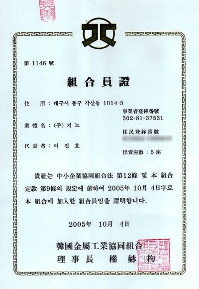 직접생산증명서(금속)